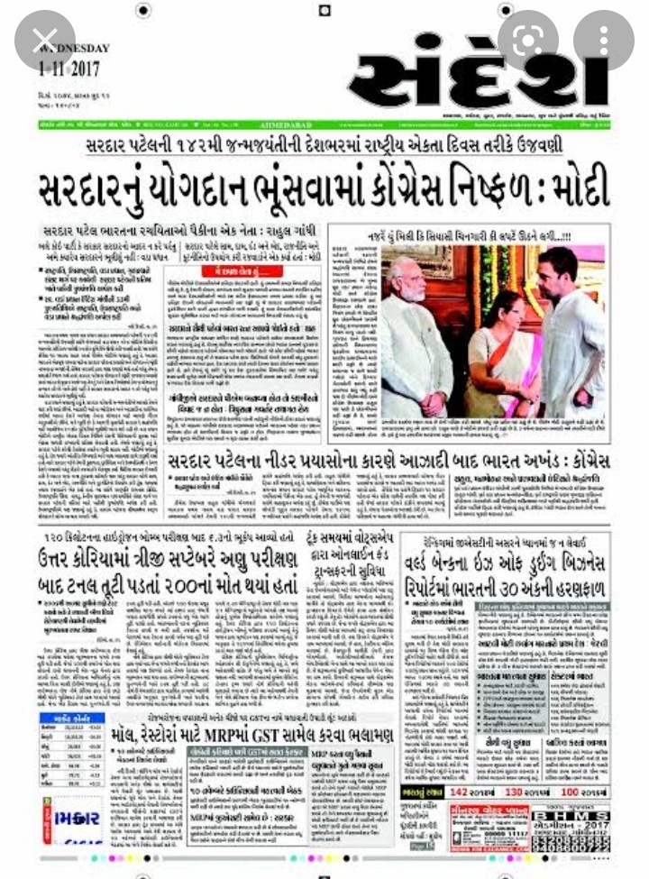 Sandesh is a leading daily newspaper in Gujarat. It is published in Gujarati and was founded in 1923.